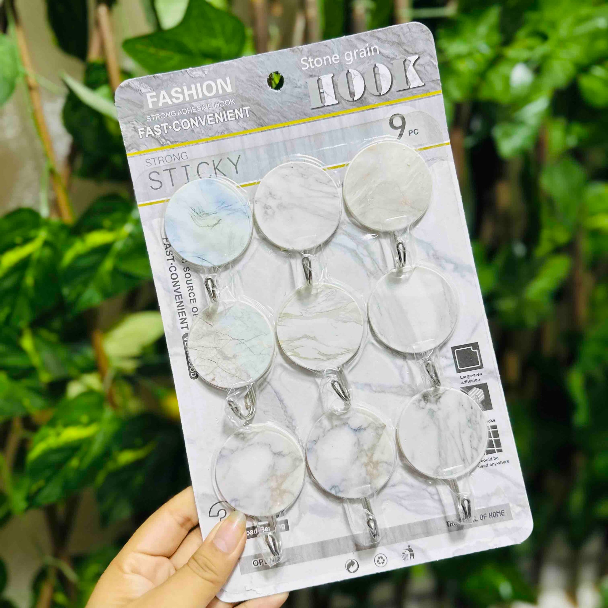 NovaHaven Marble Design Self Adhesive Wall Hooks | Heavy-Duty, Waterproof Hooks for Home, Kitchen & Bathroom | Pack of 5 / 9 | 2KG Load Capacity